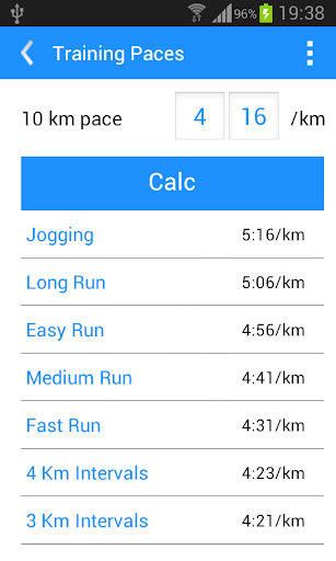 Here you can calculate various training paces from your best 10km pace.