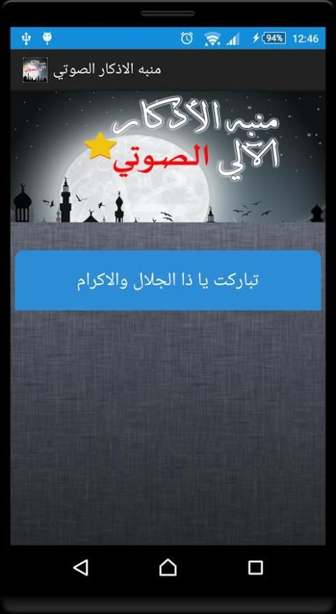 منبه الاذكار الصوتي يحتوي على مجموعة اذكار صوتية رائعة باصوات جميلة (هذا التطبيق صدقة جارية عني وعن عائلتي) لا يحتوي على اي اعلانات