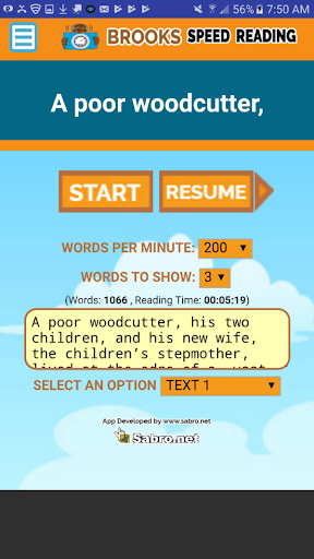 The App allows you to paste any text you want to read and it also comes preloaded with several classic fairy tales so that you or your children can improve the speed of reading, with the option to pause the reading at any time, and resume the text whenever you want to continue reading.