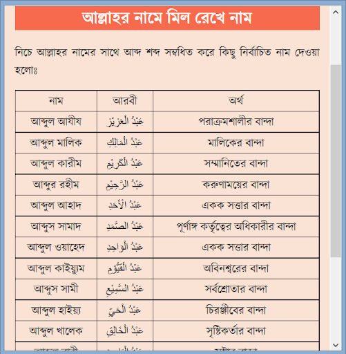 ১২। আল্লাহর নামে মিল রেখে নাম