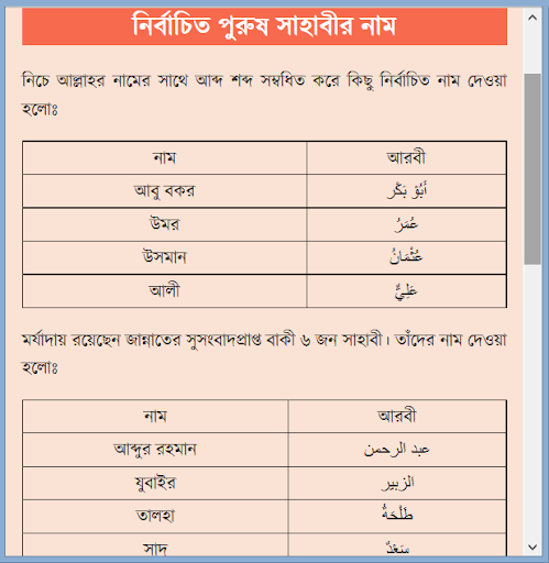 ১৪। নির্বাচিত পুরুষ সাহাবীর নাম