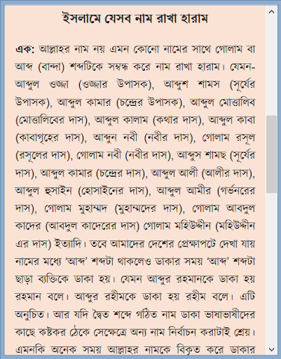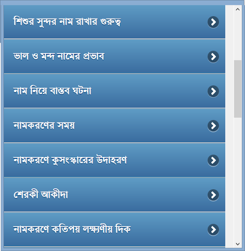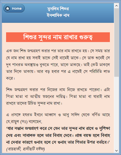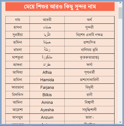 অর্থপূর্ণ রাখার গুরুত্ব, নামের অর্থ ইত্যাদি নিয়ে এই অ্যাপ ডেভেলপ করা হয়েছে। এখানে মুসলিম শিশুর সুন্দর ও অর্থপূর্ণ নাম, নামের অর্থ ছাড়াও যেই বিষয়গুলো আছে সেগুলো হচ্ছেঃ