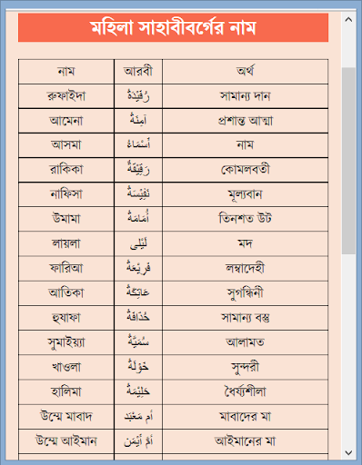 ১৭। মহিলা সাহাবীবর্গের নাম