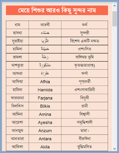 ১৮। মেয়ে শিশুর আরও কিছু সুন্দর নাম