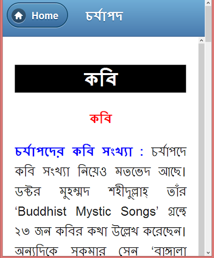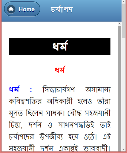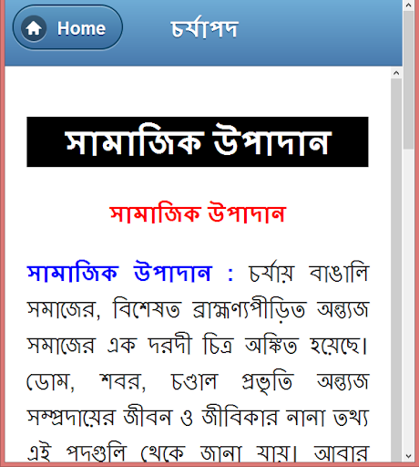 চর্যাপদ বাংলা ভাষার প্রাচীনতম কাব্য তথা সাহিত্য নিদর্শন। নব্য ভারতীয় আর্যভাষার ও প্রাচীনতম রচনা এটি। আমাদের এই অ্যাপে চর্যাপদ সম্পর্কে বিস্তারিত সকল তথ্য পাওয়া যাবে। এই অ্যাপে যেই বিষয়গুলো অন্তর্ভূক্ত আছে সেগুলো হলোঃ