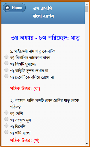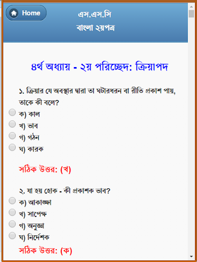এসএসসি বাংলা ২য় পত্র নৈর্ব্যক্তিক প্রশ্ন এবং সেগুলোর সঠিক উত্তর নিয়ে এই অ্যাপ।
