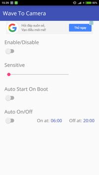 Wave Camara - Wave to Camara phone is an app allows you to open camara easy just by waving you hand over the proximity sensor. A timer can be set to determine when the device should be locked when the proximity sensor is covered.