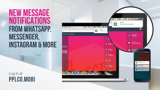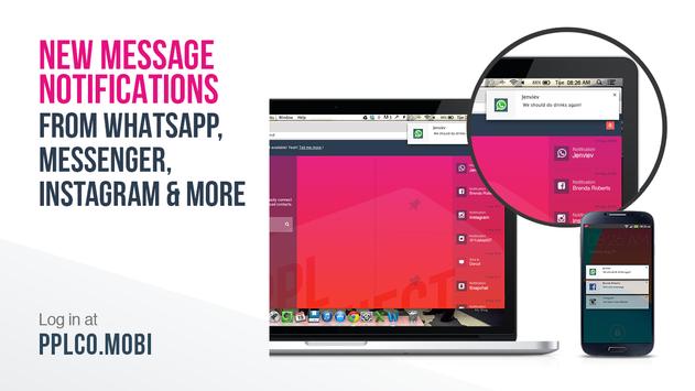 PPLCONNECT lets you receive all your other messaging app notifications, including WhatsApp, Viber, Facebook Messenger, Instagram, Twitter, Snapchat, Skype, etc. across all your devices.