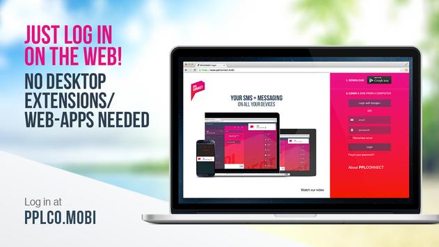 PPLCONNECT helps with: sms text messaging, messages, computer sms, text from pc, text from computer, sms from browser, browser sms, text free, remote desktop, sms notifications, remote sms, mightytext, mysms, desktop sms, text from tablet, dialer on tablet, dialer on computer, call from tablet, call from computer, notifications, imessage, texting free, texting from tablet, battery saver, sms dropbox, sms popup, iphone messaging and imessage for android.