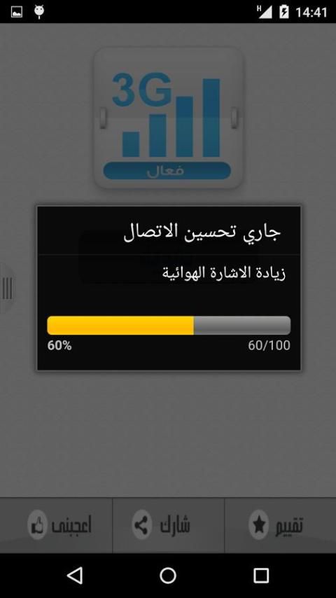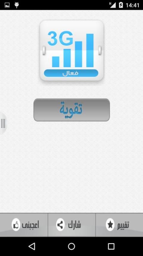 هذا التطبيق يعمل على تقوية و تسريع شبكة الهاتف من خلال قفل و فتح الشبكة و معالجة الشحنات الهوائية فإذا كانت شبكة جوالك بطيئة و يوجد بها عطل أو تقطيع كل ما عليك فعله هو الضغط على زر التقوية