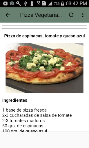 En esta aplicación podrás encontrar un recetario con alrededor de 50 recetas de deliciosas pizzas, que puede elaborar fácilmente en casa. Son muy económicas y fáciles de hacer. Si eres de las personas que no consume pizza por temor a engordar no te preocupes, también hemos pensado en ello, y hemos preparado un grupo de recetas de pizzas vegetarianas, que le vendrán muy bien a estas personas.