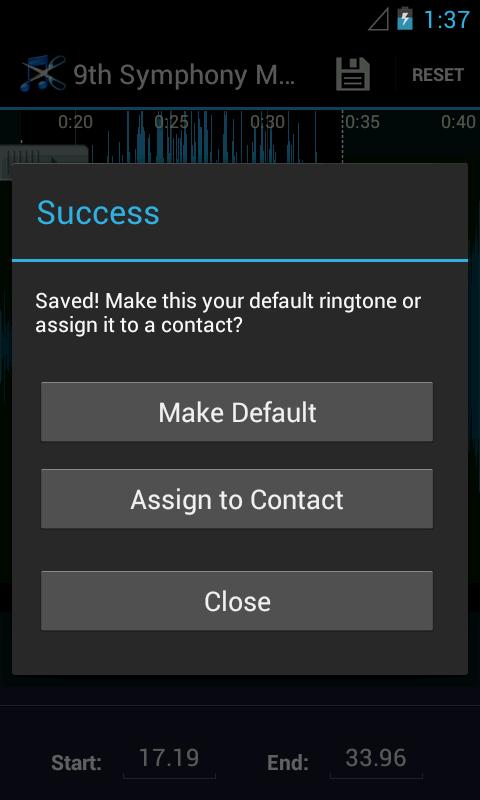 All totally FREE ringtone editor to tone your music!! The cut results are stored in "sdcard/media/audio/". Its easy to make your own alarm tones, caller tones, and notification tones.