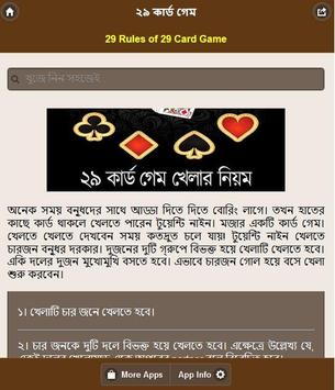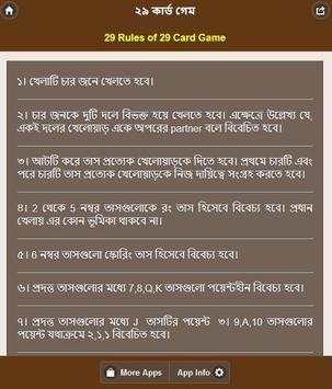 অনেক সময় বন্ধুদের সাথে আড্ডা দিতে দিতে বোরিং লাগে। তখন হাতের কাছে কার্ড থাকলে খেলতে পারেন টুয়েন্টি নাইন। মজার একটি কার্ড গেম। খেলতে খেলতে দেখবেন সময় কতদ্রুত চলে যায়! টুয়েন্টি নাইন খেলতে চারজন বন্ধুর দরকার। দুজনের দুটি গ্রুপে বিভক্ত হয়ে খেলাটি খেলতে হবে। একি দলের দুজন মুখোমুখি বসতে হবে। এভাবে চারজন গোল হয়ে বসে খেলা শুরু করবেন।