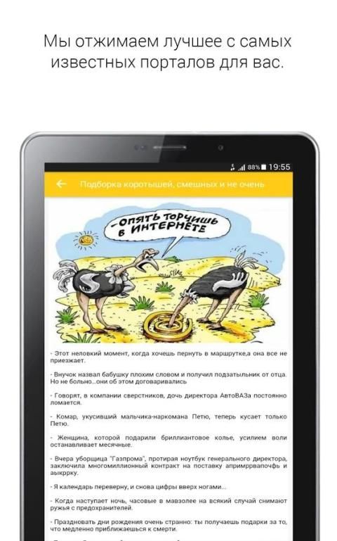 We are the best in spinning the news and jokes and, of course, we choose only the best sources, "YaPlakal", "Fishki.net", "pikabu.ru" (Peekaboo) and "vk.com" (Vkontakte).