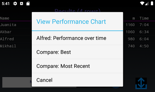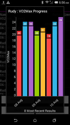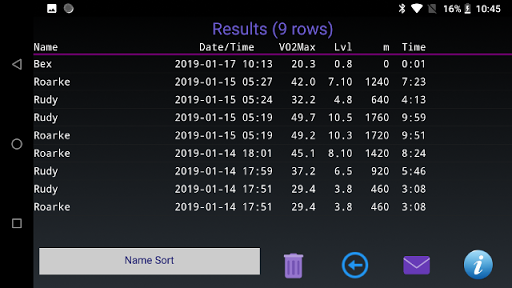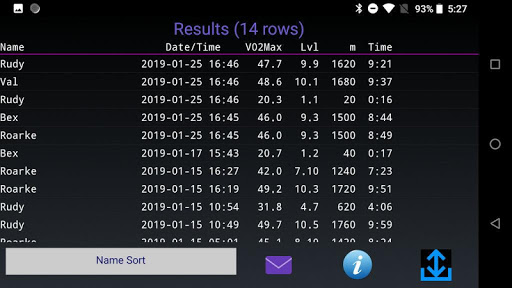 - সাজানোর ফলাফল। নাম দ্বারা, VO2MAX বা তারিখ