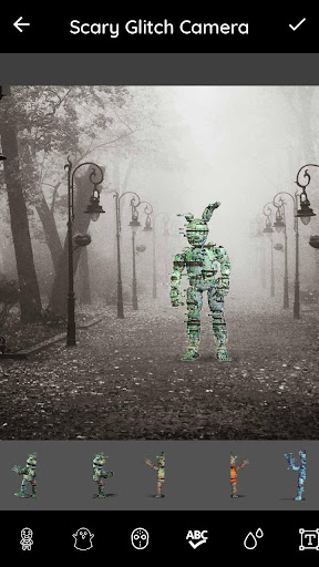 download this free scary prank photo editor, take a selfie or choose one of the pics from the gallery and add a glitch stickers to create an effect of horror.