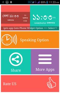 বাংলা ঘড়ি : Bangla Clock হোম স্ক্রিন এ বাংলায় সময় ও তারিখ দেখার চমৎকার একটি এপ্লিকেশন। এটি একটি widget এপ্লিকেশন।