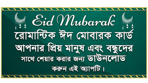 ঈদ কার্ড / Eid card নিয়ে আমাদের এই অ্যাপ। এই অ্যাপটিতে আপনার রোমান্টিক ও অন্যান্য সকল ধরনের ঈদ শুভেচ্ছা জানানোর বিষয়াদি পাবেন। ধন্যবাদ আমাদের সাথে থাকার জন্য।