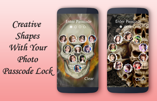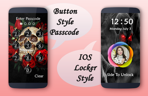 in this app you also set your name with your photo. skull DIY Lock Screen is application to protect your smartphone through using pin/passcode or pattern, no one can enter into your phone without correct four digit password or current pattern.