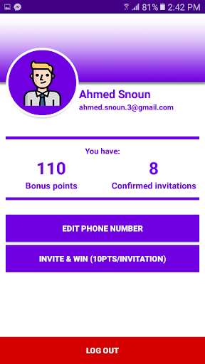 - Inviting friends via social networks, email and SMS to earn bonus points.