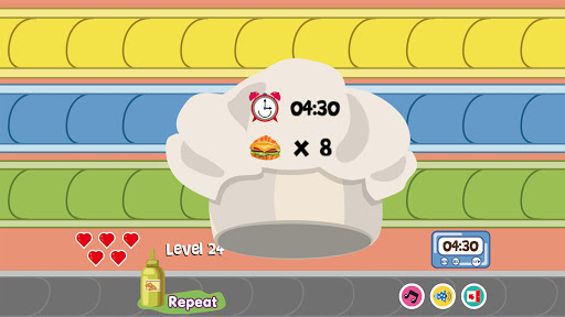早餐大作戰 (Happy Breakfast) 你喜歡吃漢堡、三明治、還是可頌麵包呢? 快來一起變身為早餐大主廚吧! 此遊戲需仔細聽取題目語音,才能做出正確的餐點喔! 玩家依據題目語音的內容,在限定時間內完成餐點,但請小心不要觸碰到錯誤的字母或圖片,以免食物燒焦,生命值愛心被扣除,而造成闖關失敗。遊戲進行中,玩家可隨時點選語音重復鍵聽取題目語音,並可透過遊戲資訊瞭解剩餘時間與所在關卡。借由朗朗上口的題目播放,有趣的遊戲操作,以強化所學。