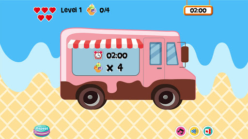 玩家需用最快的速度,接到題目語音的冰淇淋球,但請小心,不是語音當中所念到的冰淇淋球可不能亂接喔! 若是接錯,整杯冰淇淋會打翻融化,並且倒扣生命值愛心喔! 在闖關過程中,玩家須發揮手眼協調能力與專注力,透過刺激有趣的遊戲操作,加深對字母發音與圖像的連結性,強化所學。