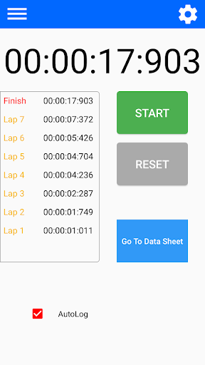 A manual stopwatch function can be deployed when video is not needed or used that will automatically log the results in a data sheet. Additional Labels and dates can be added to give these times organization as well.