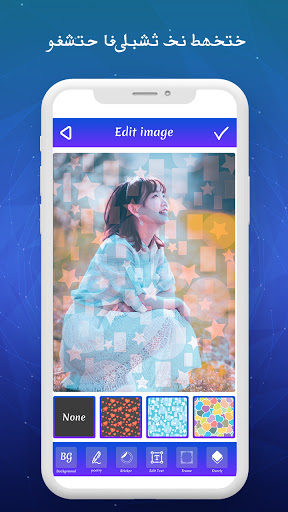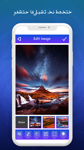 * Auto adjustable Arabic text on Photos. Adjust background color, select background from gallery.