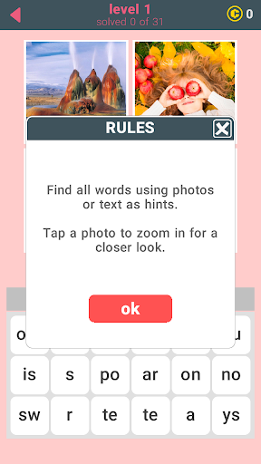 One word per photo. 31 words per level. 651 words in the game. Can you find all of them? Sometimes you have to think beyond the obvious. Good luck!