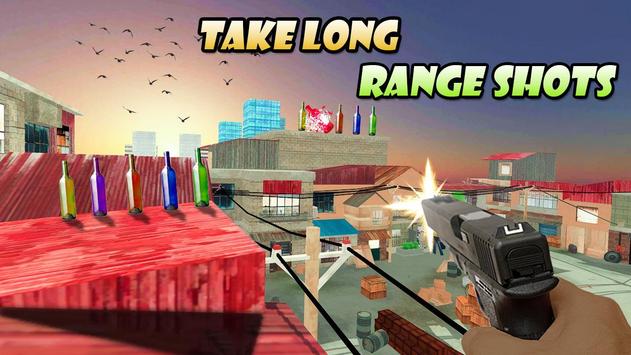 Bottle target shooting is a renovation of classic bottle shooting games with more advance and realistic shooting simulation. Experience the multiple new gun shooting game missions with difficult targets and bottles to shot down in 3D FPS shooting arena. Get ready to smash the revolving and evolving bottles in this target shooting game and crush all the moving bottles in no time. Aim and shoot the flipping bottles with perfect accuracy and use the zoom button to avoid missing a single gunshot. Be a bottle shooting expert while playing this bottle break game and use the perfect bottle smash hits to become a pro smasher of bottle shooting world. It is time to test your sniper shooting skills by smashing down the multiple revolving targets and enjoy the amazing and real glass smashing sound during your bottle-shooting adventure.