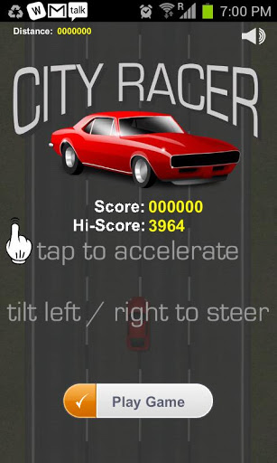 A simple car racing game with tilt to control feature. Please give us feedback on android@glamble.com for bugsfeatures request.