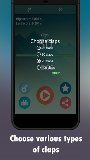 এই গেমটি, আপনি আপনার clapping ক্ষমতা পরিমাপ করতে যাচ্ছেন।আপনি কতগুলি সেকেন্ডে ২5, 50 টি ক্লিপ করতে পারেন ... claps।এছাড়াও, আপনি একটি ক্লিপ জন্য একটি টাইমার সেট করতে পারেন।আপনার বন্ধুদের এবং পরিবারের সাথে প্রতিযোগিতা করুন।নেতা বোর্ডের মাধ্যমে আপনার র্যাঙ্কিং চেক করুন।আপনি কি জানেন যে "বিশ্ব clapping" রেকর্ড প্রতি সেকেন্ডে 18 টি ক্লিপ হয়।হয়তো এটা মারার আপনার সুযোগ :) একটি মজা আছে!