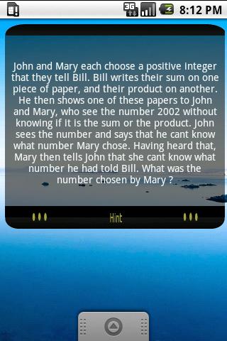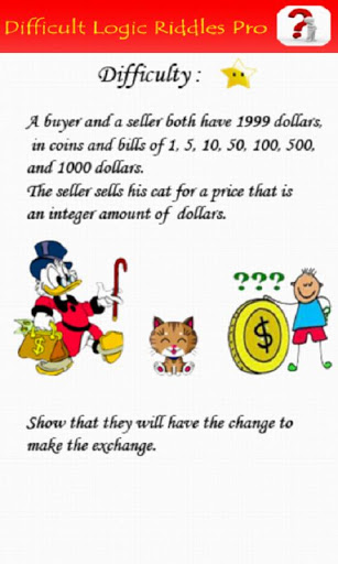 You think you39;re smart ? Trysome really difficult MathsLogic RiddlesYou think you39;re smart ? Try this widget You39;ll find here some really difficult MathsLogic Riddles, that last for hours. In the Pro version, you both have the hints and the answers.