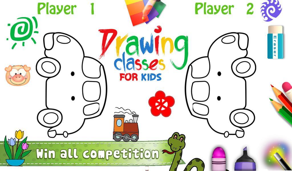 You can choose multiplayer option where 2 kids can draw at the same time and compete with each other.