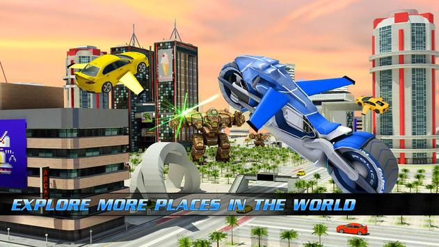 Download the amazing Flying Bike Robot. In this crazy game you will be flying actually with a robot Bike like airplane flight simulator, and bike robot racing and robot war in the sky of Futuristic city which fell very adventurous and challenging.