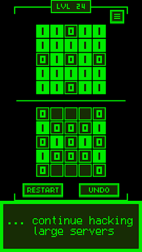 You'll get a hacker's terminal which you can use to hack down any server. The main tool here is your brain! Enter a code using 0 and 1 in a way, that it's matches the server's code and get access to Steem's data.