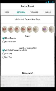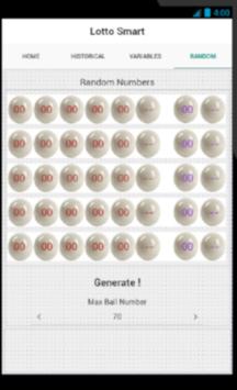 Lotto Smart Number Generator is an Intelligent Number Generator, to find potentially successful combinations. Lotto Smart Generator combines the lotto numbers resulted in the last 2000 draws, it gives the Hottest numbers and the most overdue numbers, for great combinations; it also has other parameters to increase the chances.