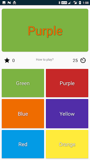 2. From the six boxes below the top box, tap the one in which the colour is written. Ignore the colour of the box, Focus only on the meaning of the text.