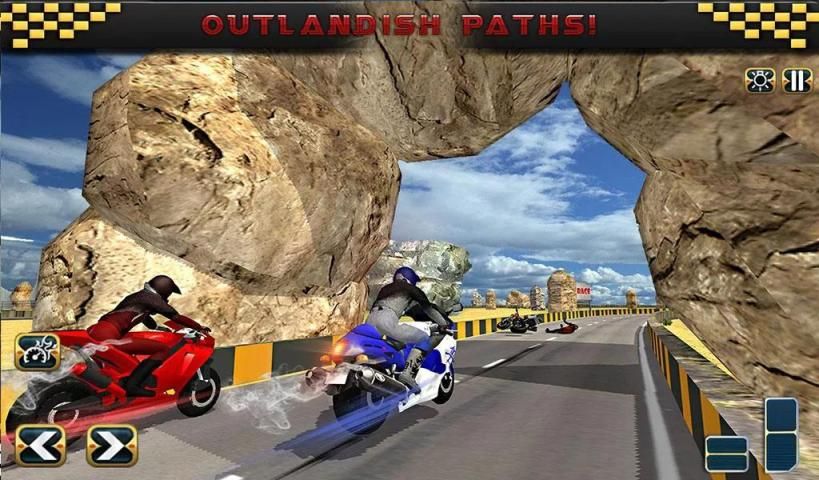 • Option to use nitrous boost to speed over; a pleasing twist to motorcycle race games.
