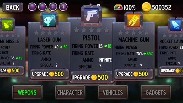 Collect points and bonuses can be used to upgrade weapons and vehicles.