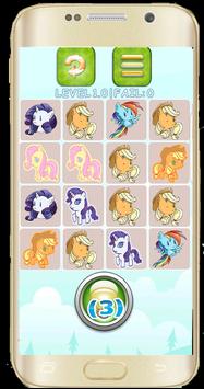 For each level, player is required to tap the square buttons and need to memorize what is behind it in order to match its couple. Players are required to complete a level in minimum finger taps to match all pony.