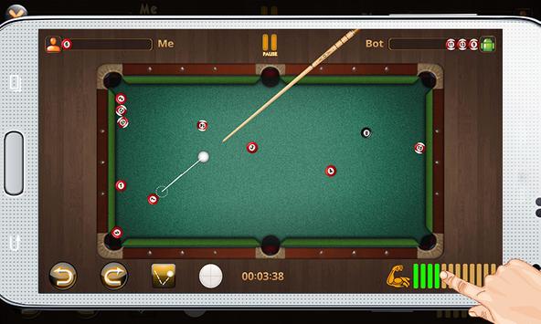 The object of the game is to pocket your set of assigned balls. The more balls sink the higher scores you get. Touch the screen to adjust the direction and drag down the power-up in the RIGHT to strike.