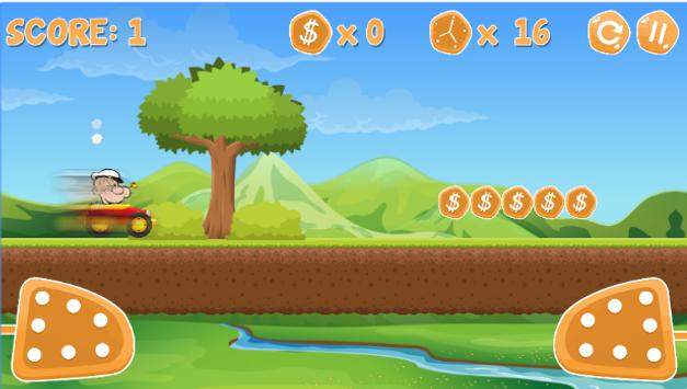 So everyone knows that papay is a game inspired by a cartoon movie, popay is so intelligent , he's eating his own food , He can drift using his amazing car prepared for racing, so don't forget to help pop eye to win his enemies.