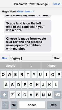 In the Predictive Text Challenge, you are given a “Magic Word” and try to build a sentence with that word in it. The problem is, you only get to type the first word. After that, you need to click on the predictive text suggestions. This app is based on “The Predictive Text Challenge,” a Good Mythical Morning episode by Rhett and Link. Search “The Predictive Text Challenge” on YouTube to find Rhett and Link’s version of the game. Have fun!