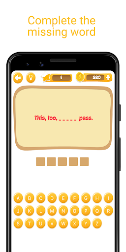 - প্রবাদে অনুপস্থিত শব্দটি খুঁজে পেতে অক্ষর আলতো চাপুন।
