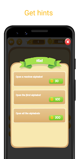 আপনার প্রতিটি সঠিক অক্ষরের জন্য 10 পয়েন্ট উপার্জন করুন এবং আপনি যে শব্দগুলি খুঁজে পাচ্ছেন না তার জন্য ইঙ্গিত পান এই পয়েন্ট ব্যবহার করে।