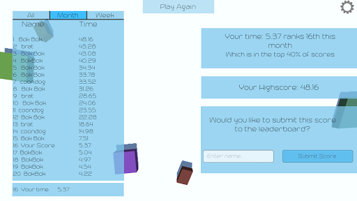 - মাল্টিপ্লেয়ার লিডারবোর্ডগুলিতে সমস্ত সময়, মাস এবং সপ্তাহের সর্বোচ্চ স্কোরগুলি প্রদর্শন করা মাল্টিপ্লেয়ার লিডারবোর্ডগুলিতে স্থানগুলির জন্য প্রতিযোগিতা করুন