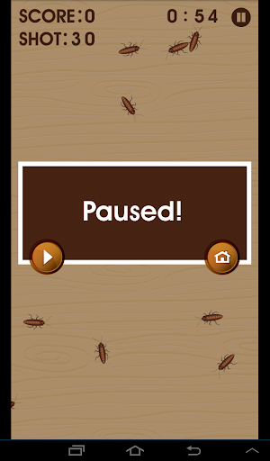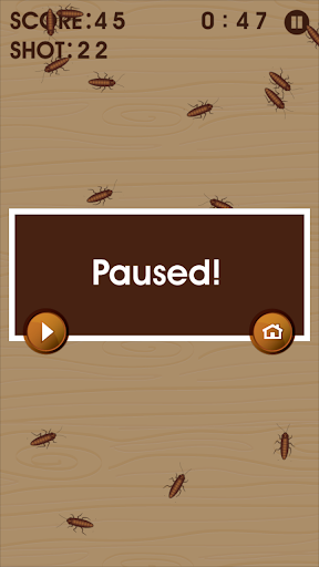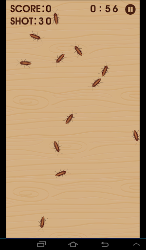 Game play is to kill cockroaches as many as you can within limited shots and time and make a great score.