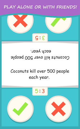 True or False? is a trivia quiz game, where you are faced with many fun and interesting facts. Your goal is to determine whether they are true or false!