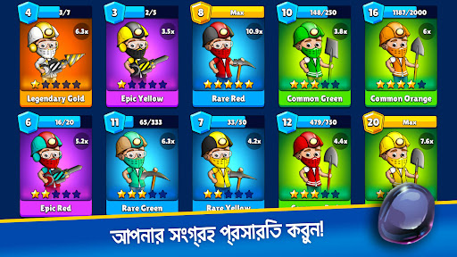 কয়েক ডজন বিভিন্ন খনি অন্বেষণ করুন এবং আপনার রাজ্য প্রসারিত করুন! সবচেয়ে রহস্যময় খনি জন্য আপনার খনিদের গভীরতম পাঠান!